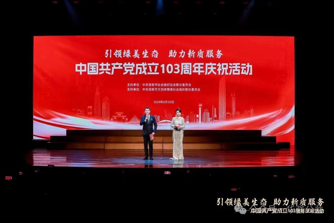 6月30日,百名党员集体宣誓、百名书记大合唱,一场由深圳社会组织总会联合党委主办、深圳市文创体育类社会组织联合党委支持的“引领绿美生态 助力新质服务”——中国共产党成立103周年庆祝活动在深圳市文化馆影剧院成功举办。